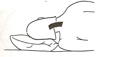還有在平躺時,不是只有將頭枕在枕頭上,好的枕頭要能支撐頸部一直到肩頸交接處的位置(上圖)。